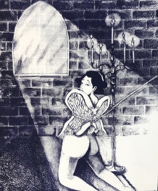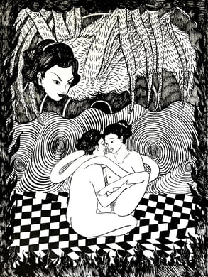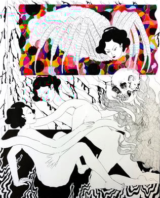 "Bound" 2-Color Screenprint on Marbleized Paper